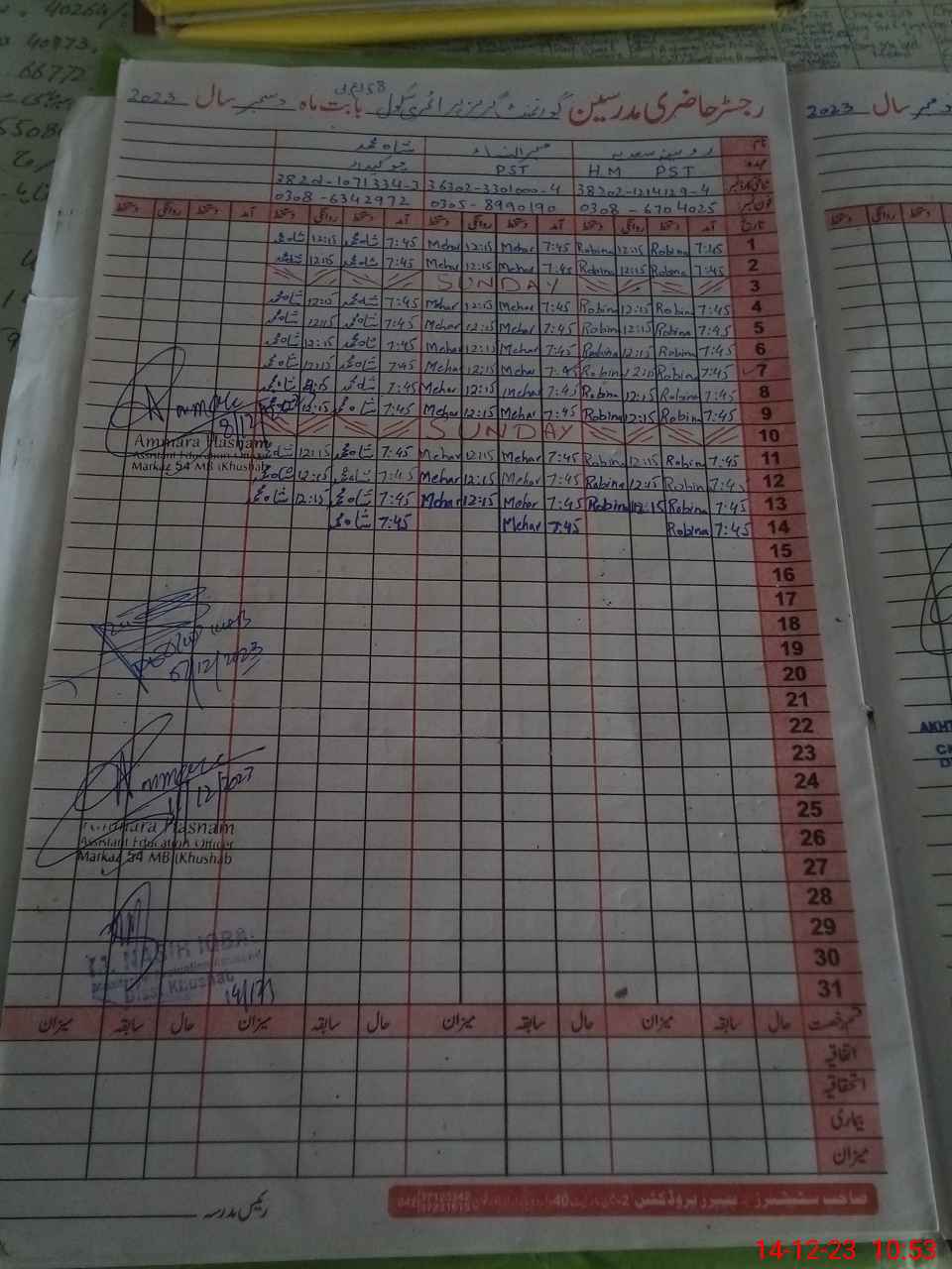 | District: KHUSHAB | Tehsil: KHUSHAB | Markaz: CHAK NO 54/MB (FEMALE) | Level: Primary | |