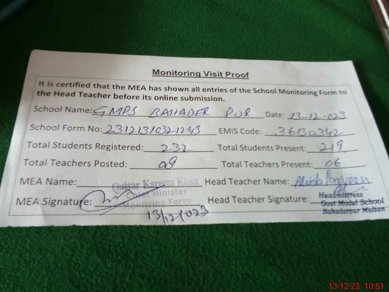 | Certified that this School was Inspected by the Undersigned MEA/DMO Today and the Information Stated Above is as Per Record. | |||||