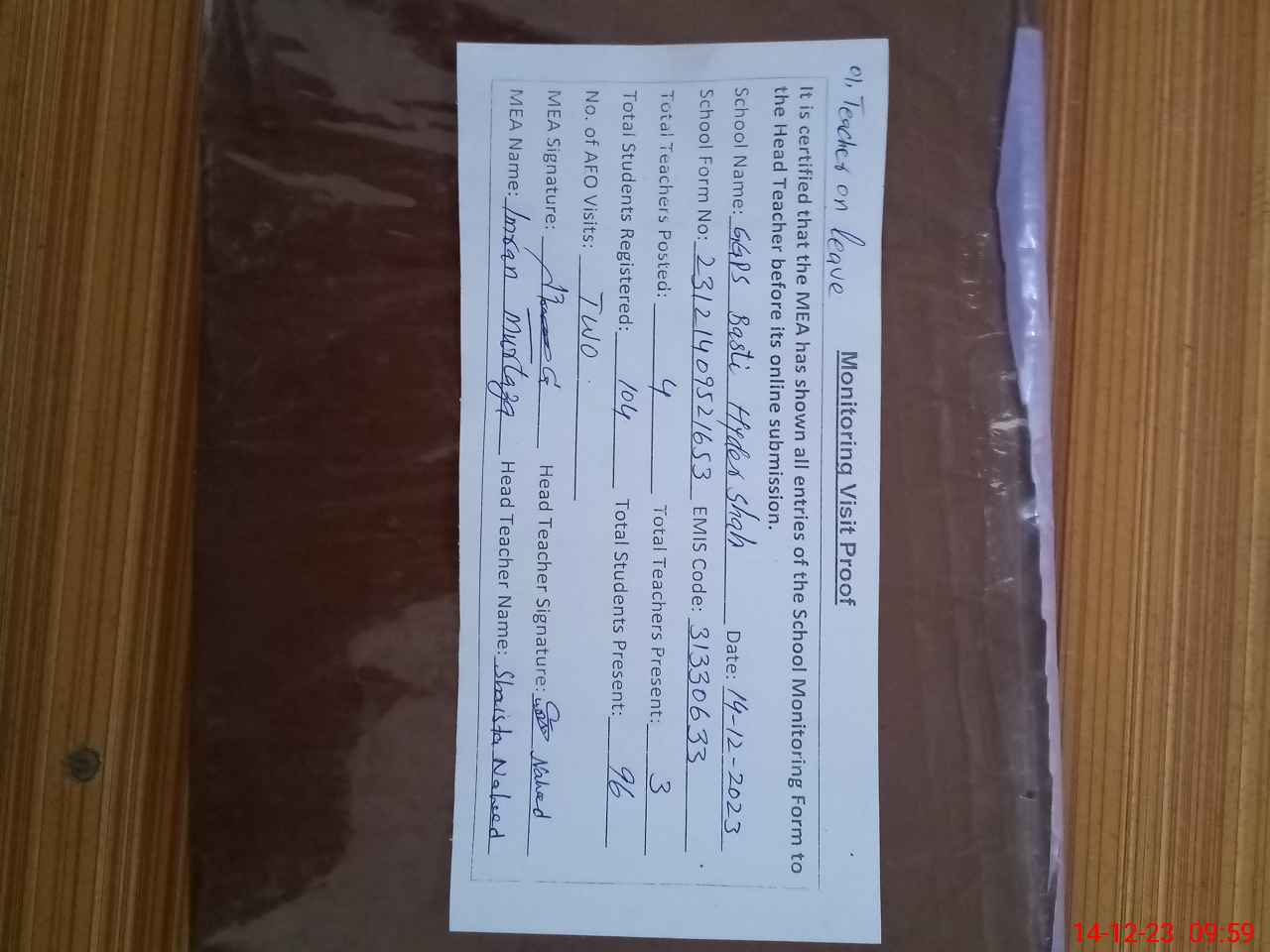 | EMIS Code: 31330633 | Name of School: GGPS BASTI HYDER SHAH | |||