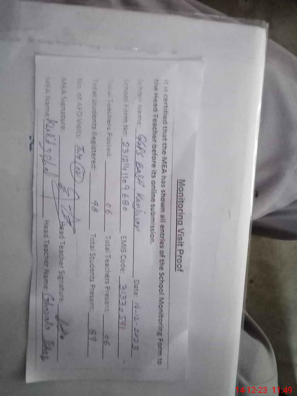 | EMIS Code: 31330591 | Name of School: GGPS BASTI KANJWAN | |||