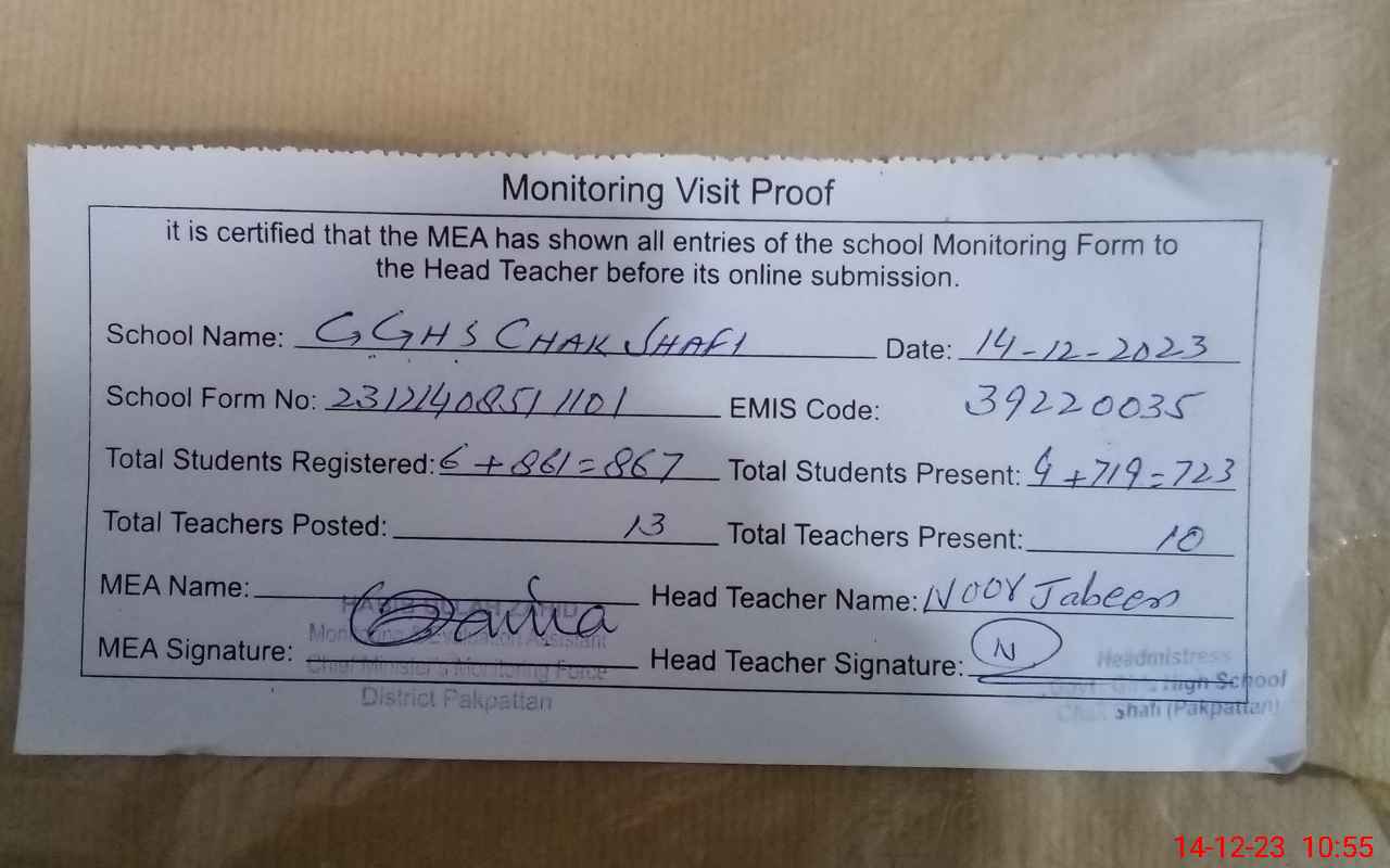 | EMIS Code: 39220035 | Name of School: GGHS CHAK SHAFI | |||