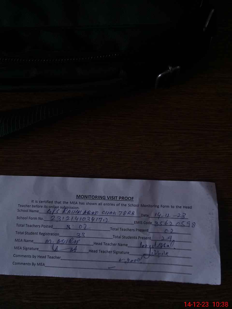| EMIS Code: 35620598 | Name of School: GPS RAHIM ABAD CHAK NO. 78 RB | |||