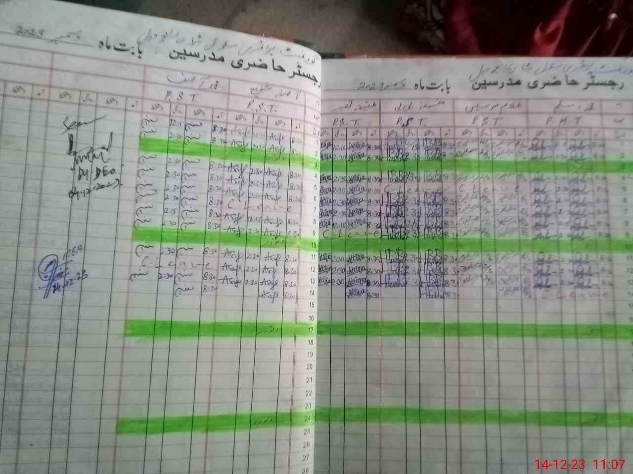 | CNIC | Full Name | Designation | R/C | Absence During Last Calender Month |