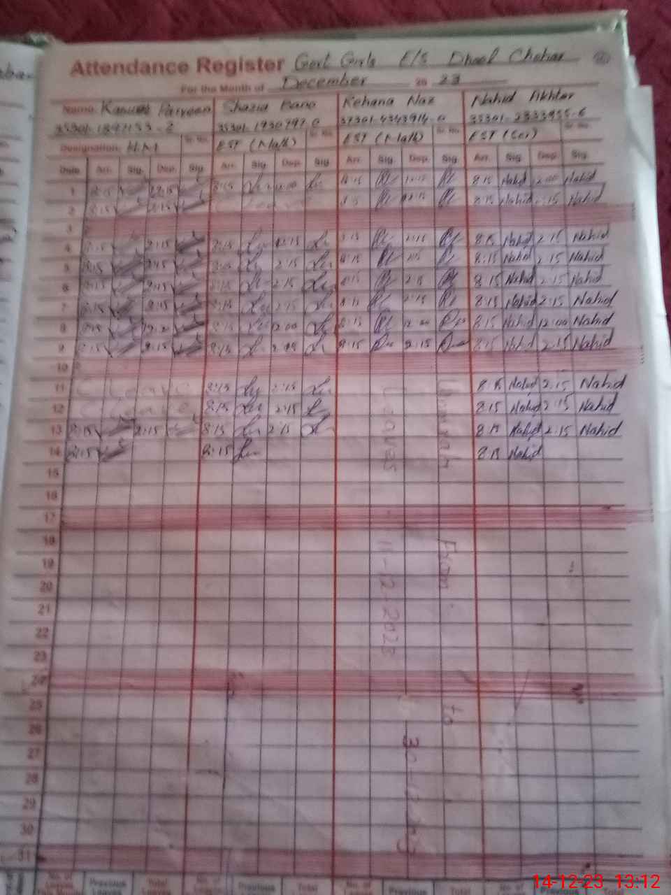 | CNIC | Full Name | Designation | R/C | Absence During Last Calender Month |