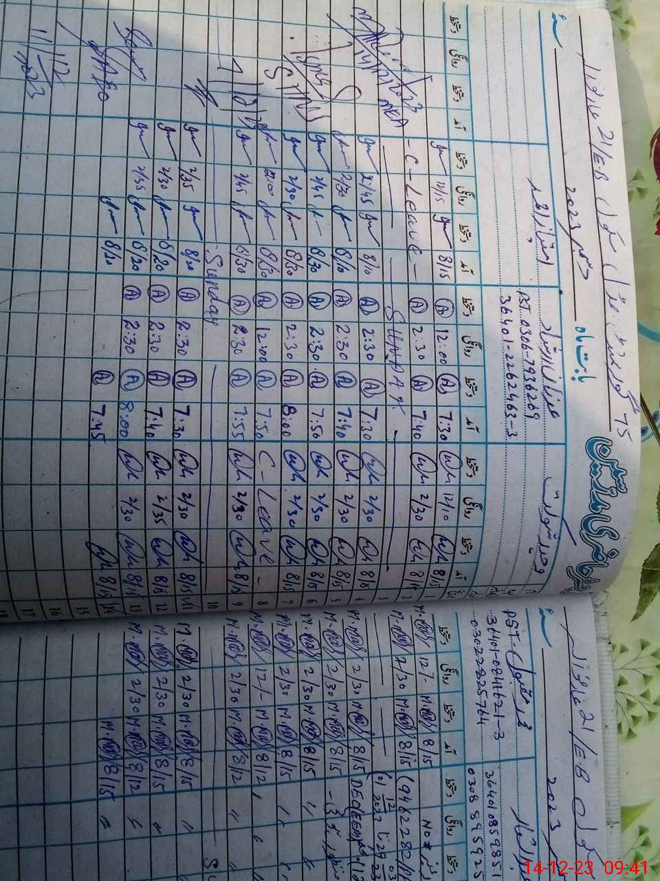 | CNIC | Full Name | Designation | R/C | Absence During Last Calender Month |