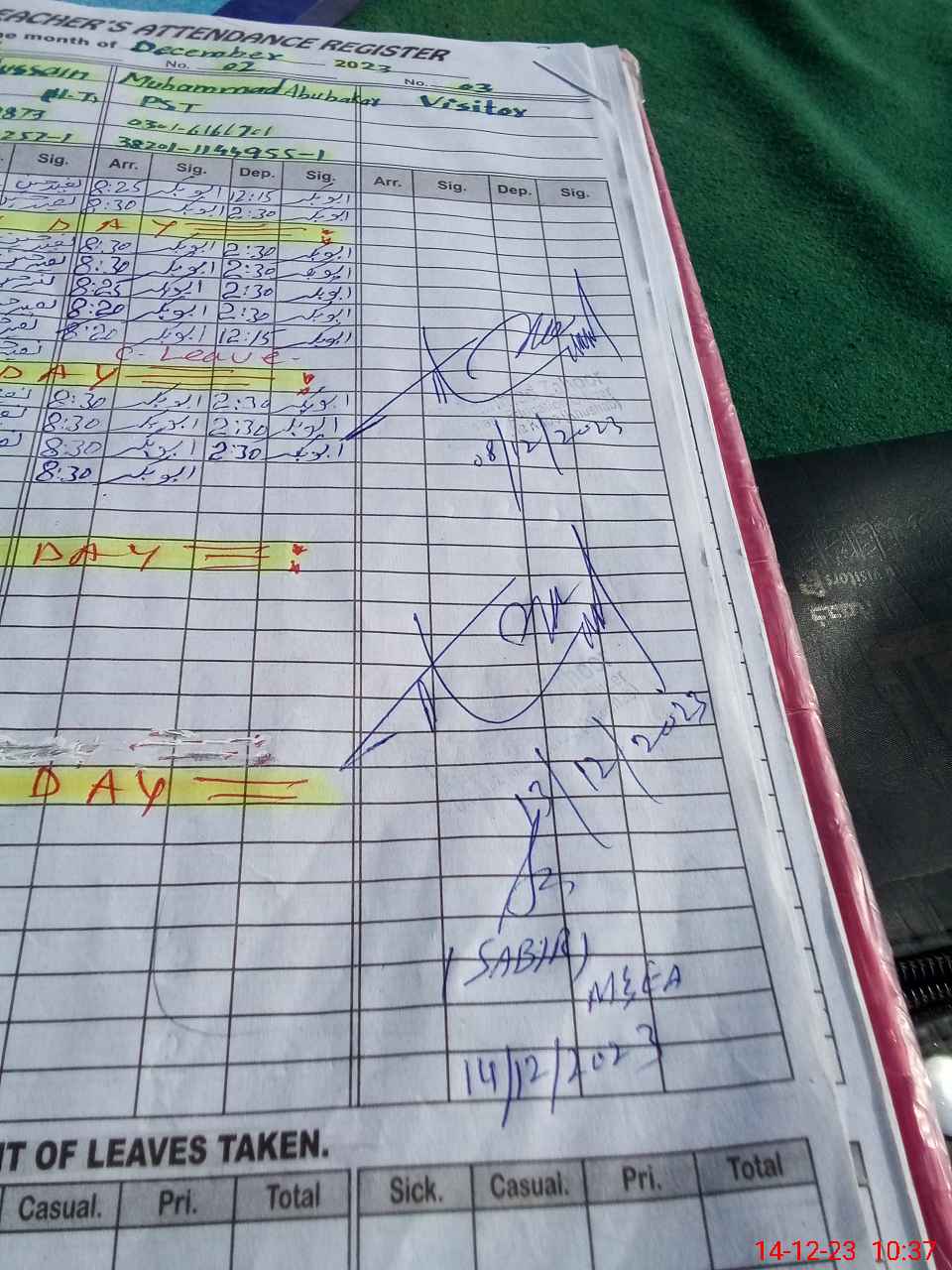 | CNIC | Full Name | Designation | R/C | Absence During Last Calender Month |