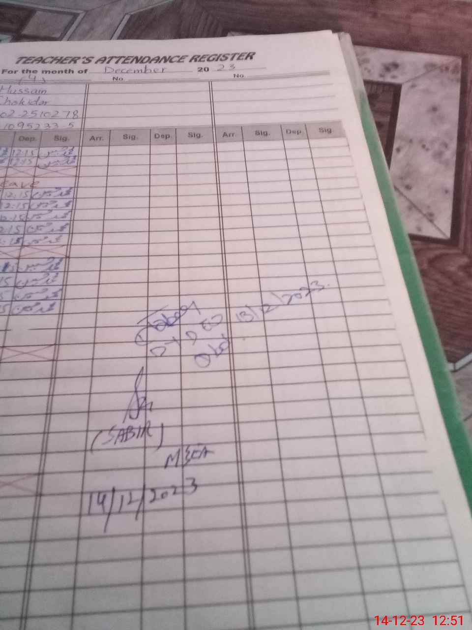 | CNIC | Full Name | Designation | R/C | Absence During Last Calender Month |