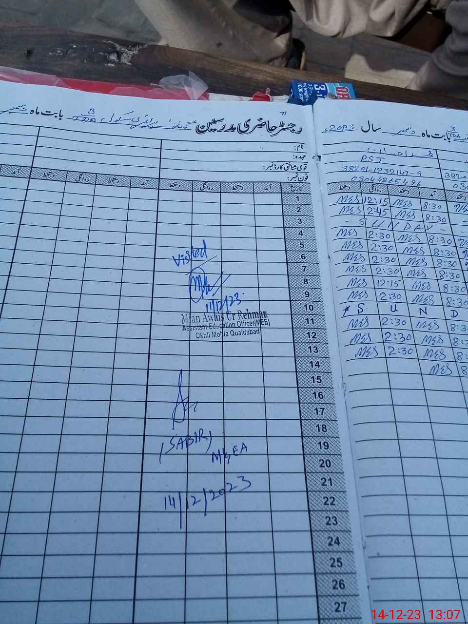 | Name: Mu**** Aq**** Mu**** Designation: (School Headmaster's/Headmistress's) PST Phone/Cell Number: 03**** |