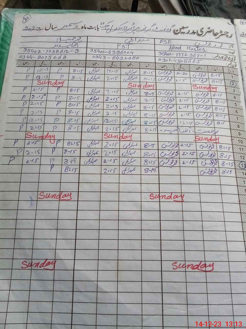 | EMIS Code: 35440623 | Name of School: GGPS CHAK NO. 20 SHARQPUR | |||