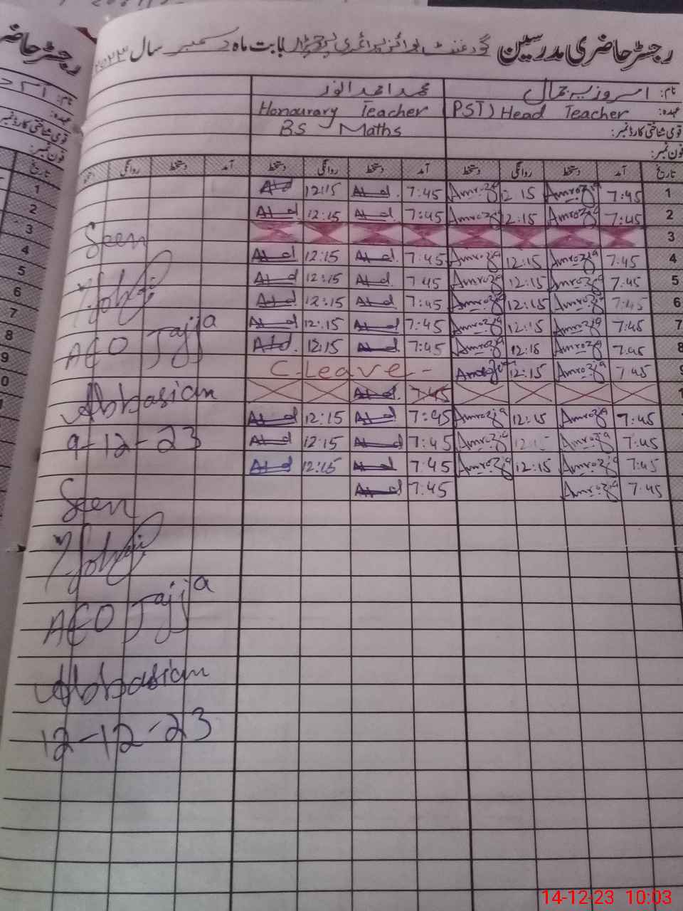 | CNIC | Full Name | Designation | R/C | Absence During Last Calender Month |