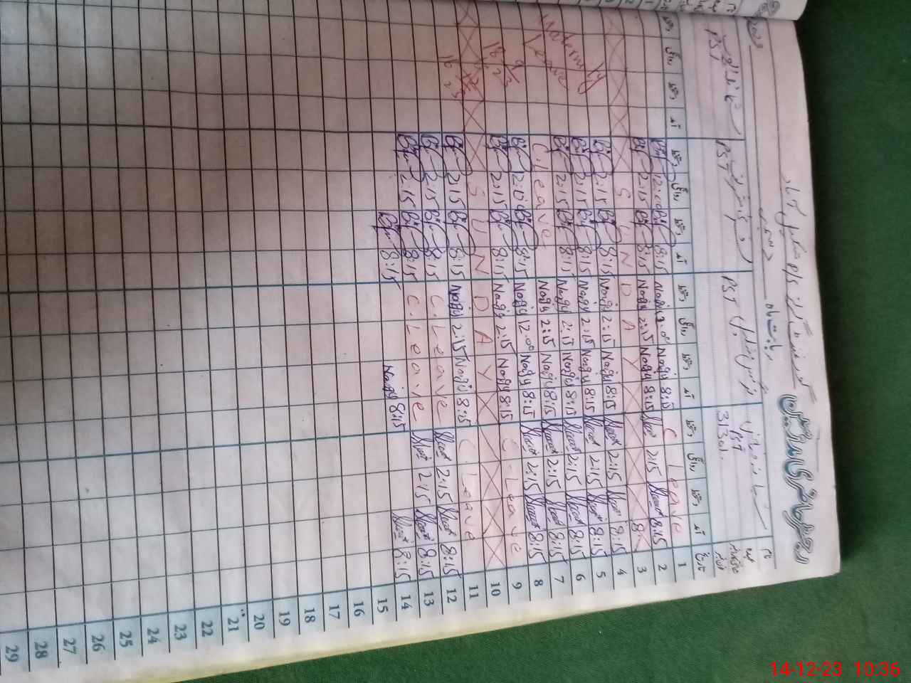 | CNIC | Full Name | Designation | R/C | Absence During Last Calender Month |