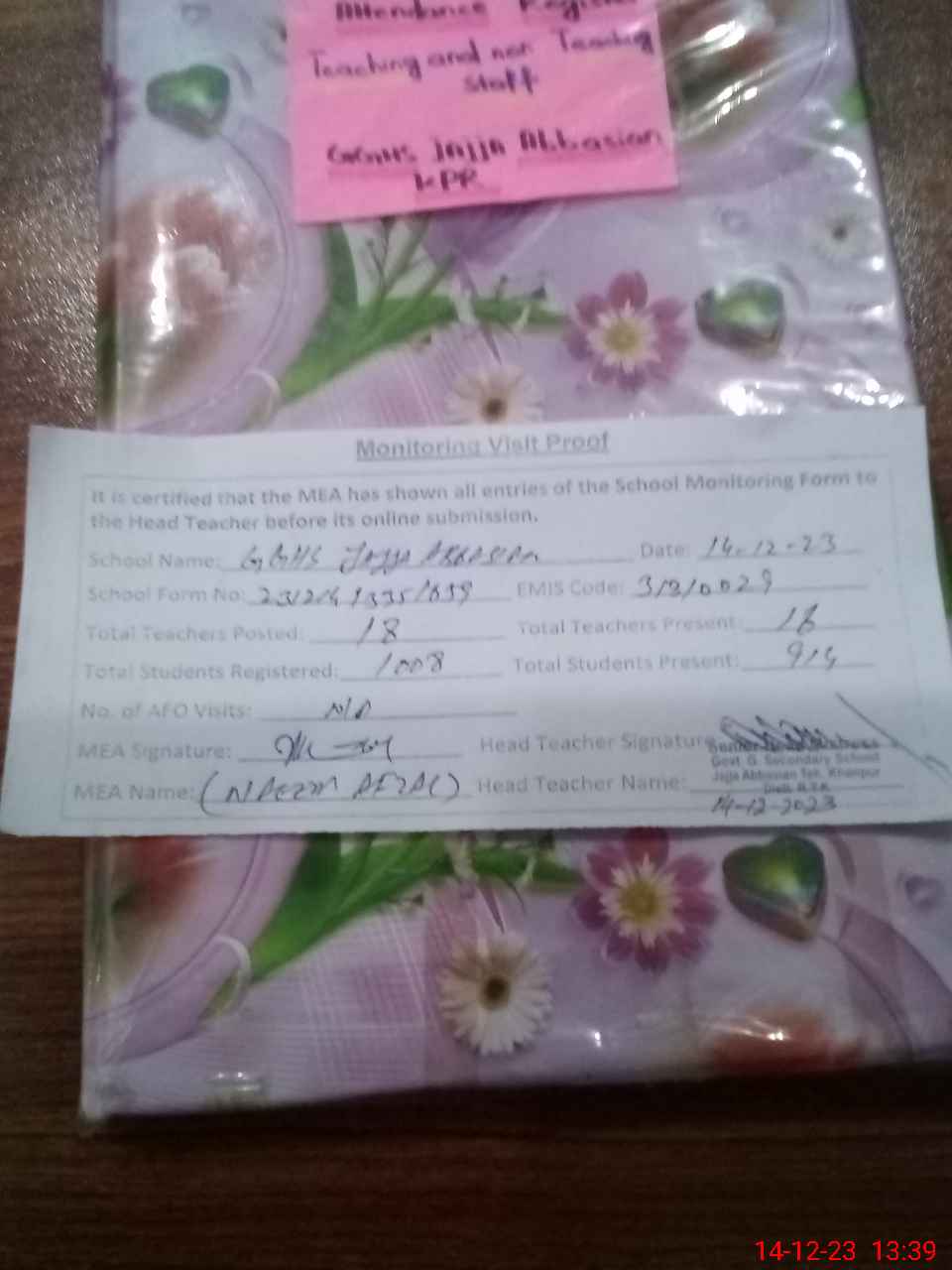 | EMIS Code: 31310029 | Name of School: GGHS JAJJAH ABBASIAN | |||