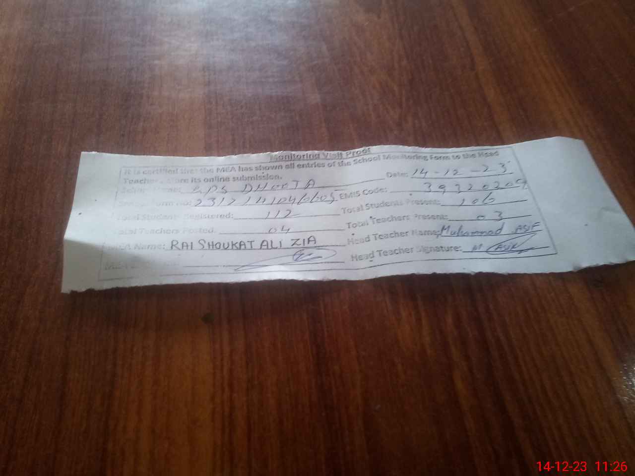 | EMIS Code: 39320209 | Name of School: GPS DHOOTA | |||