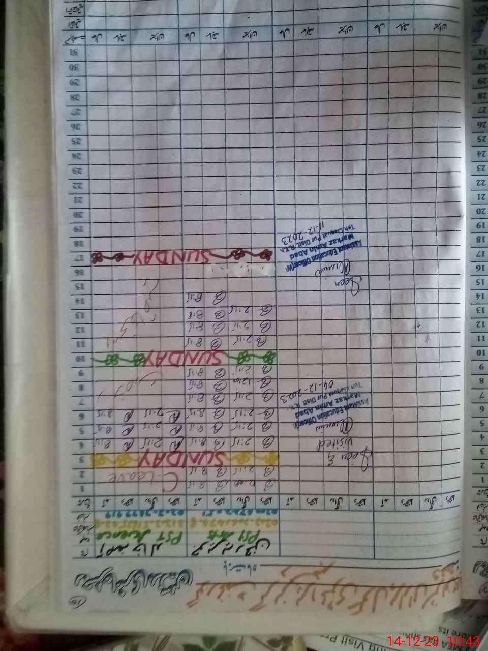 | CNIC | Full Name | Designation | R/C | Absence During Last Calender Month |