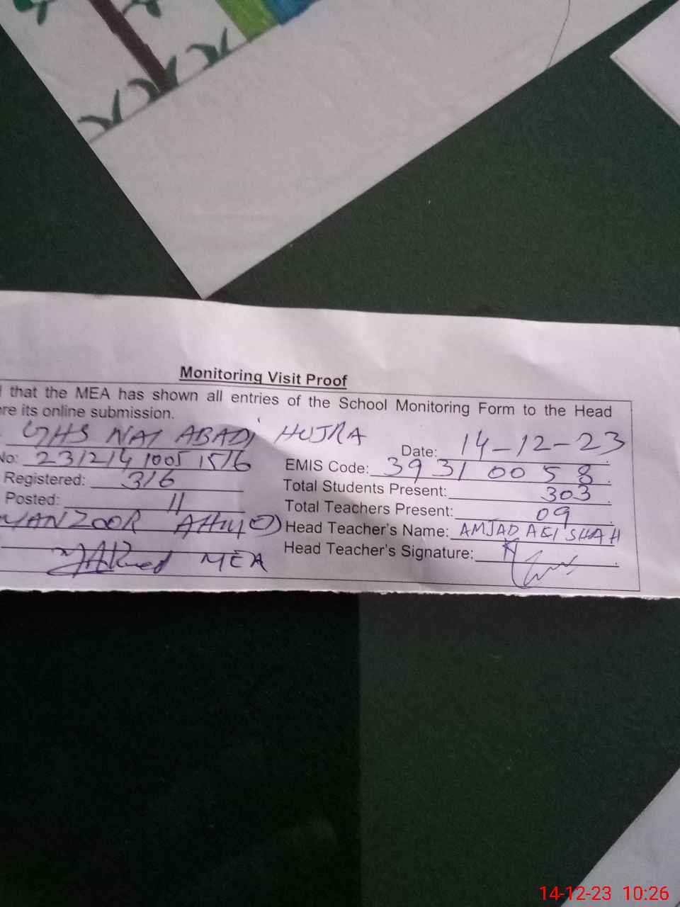 | EMIS Code: 39310058 | Name of School: GHS NAI ABADI HUJRA SHAH MUQEEM | |||