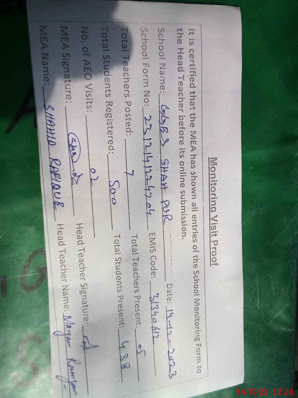 | EMIS Code: 31340612 | Name of School: GGES SHAH PUR | |||