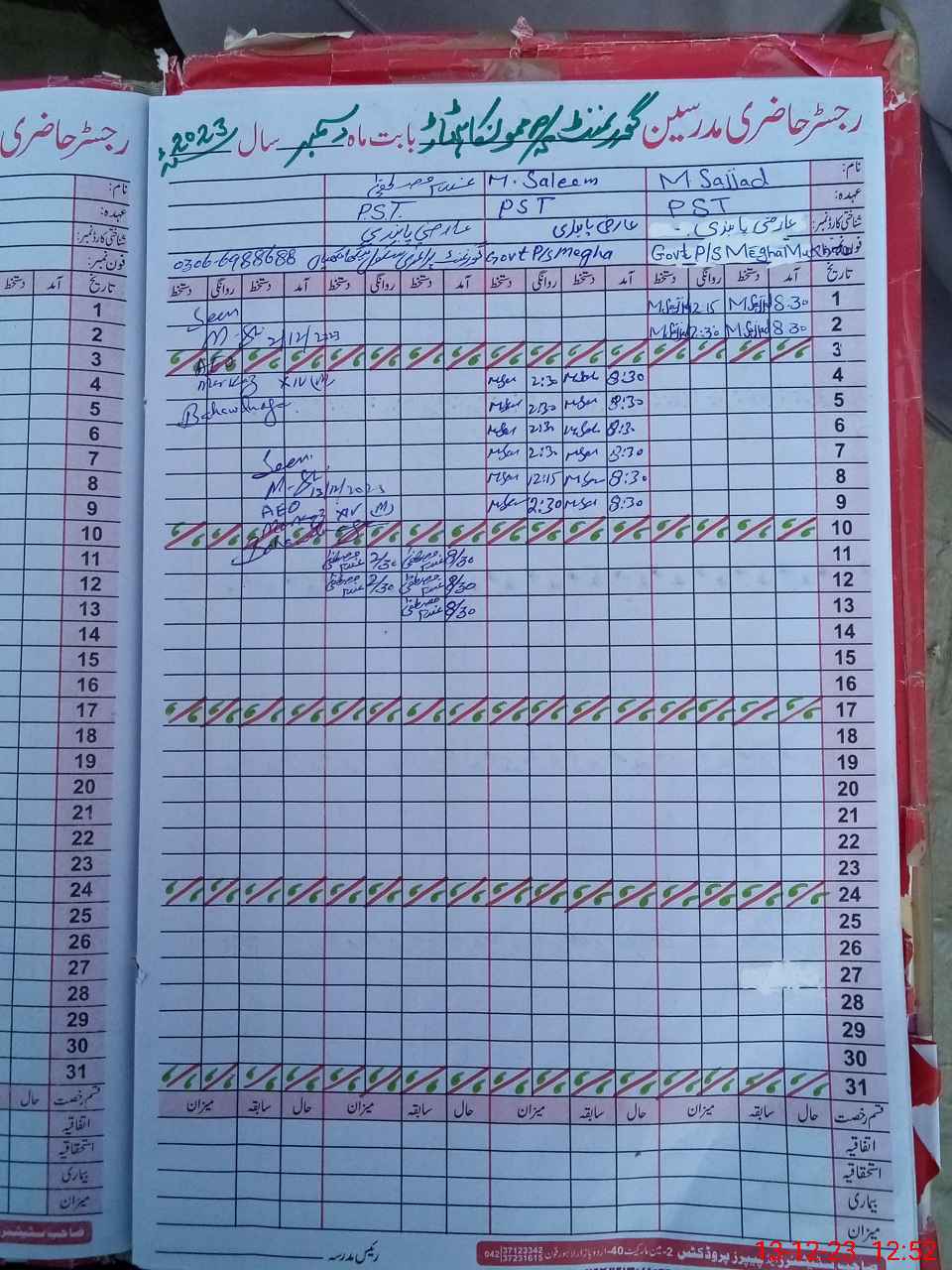 | Name: MU**** RA**** Designation: (School Headmaster's/Headmistress's) PST Phone/Cell Number: 03**** |