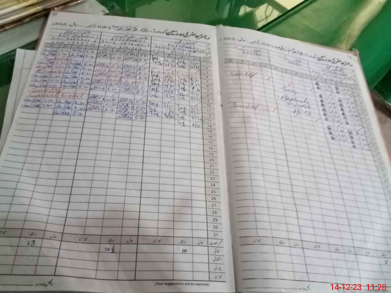 | CNIC | Full Name | Designation | R/C | Absence During Last Calender Month |