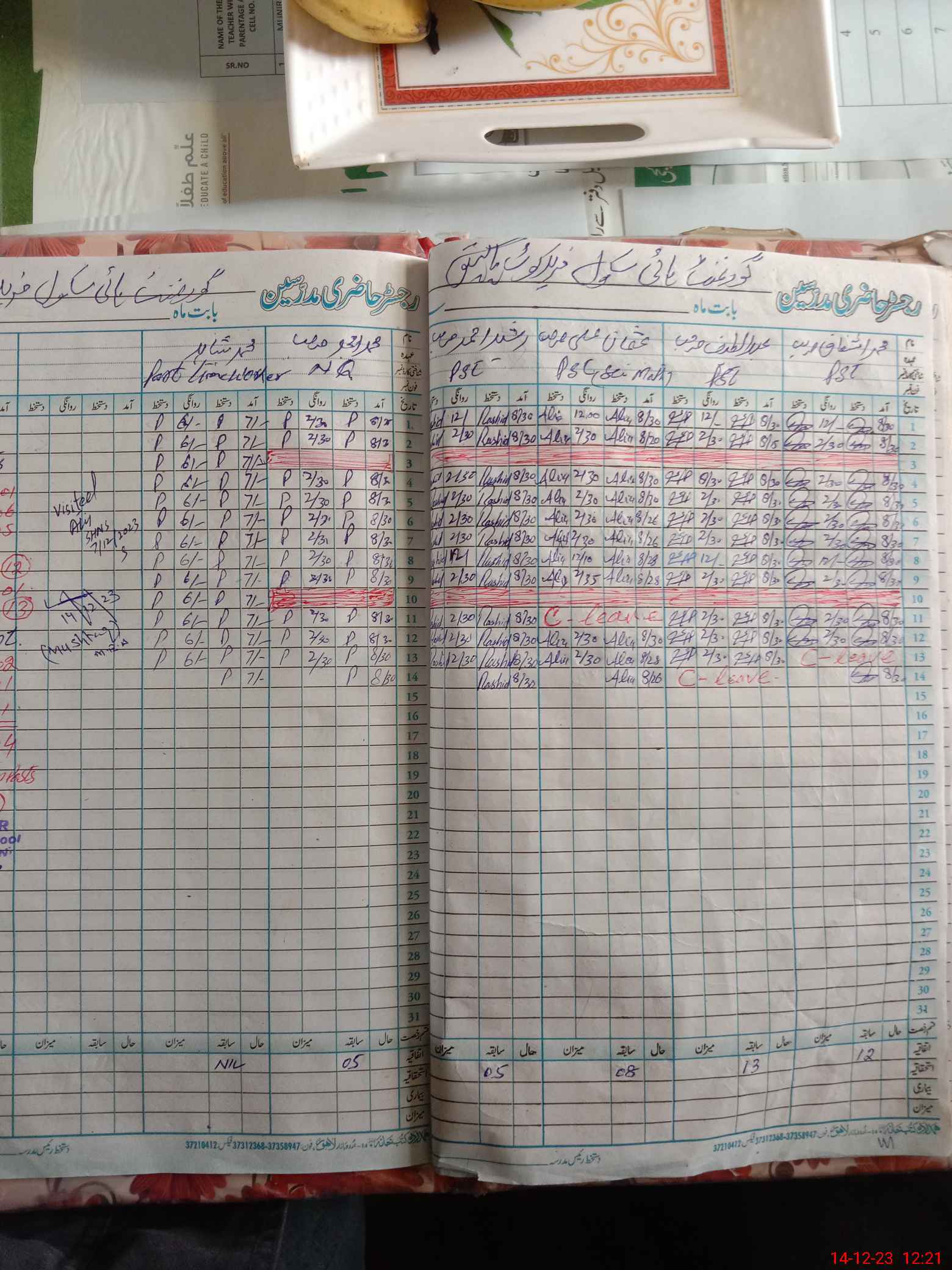 | CNIC | Full Name | Designation | R/C | Absence During Last Calender Month |