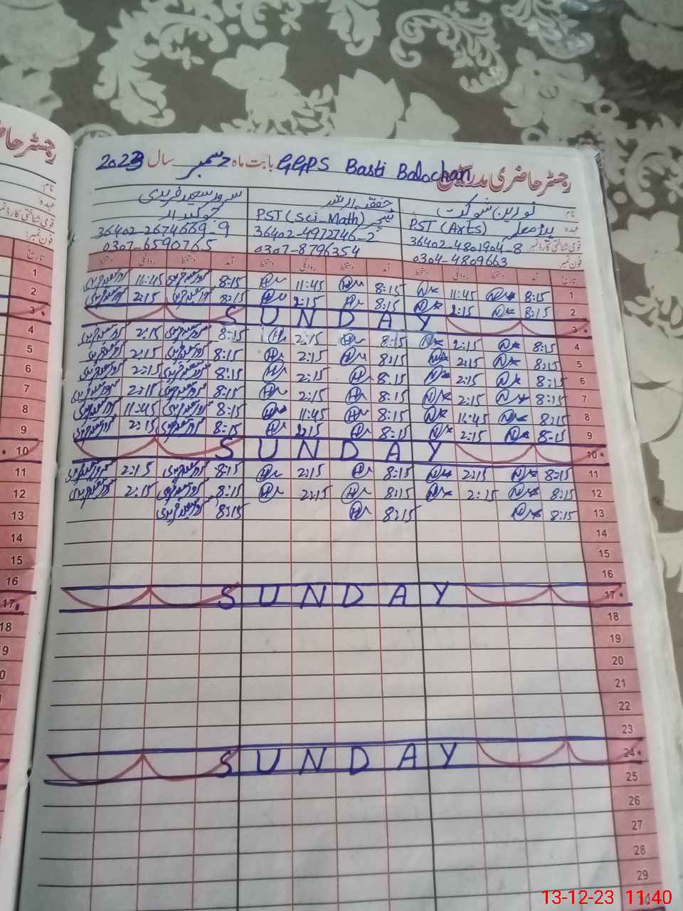 | Name: No**** sh**** Designation: (School Headmaster's/Headmistress's) PST Phone/Cell Number: 03**** |