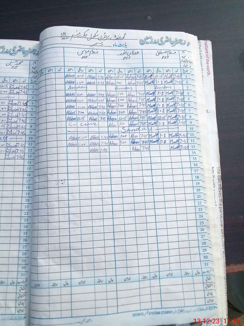| CNIC | Full Name | Designation | R/C | Absence During Last Calender Month |
