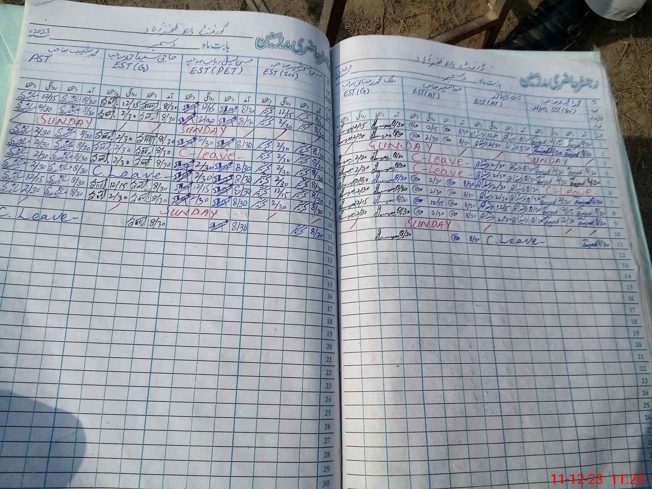 | CNIC | Full Name | Designation | R/C | Absence During Last Calender Month |