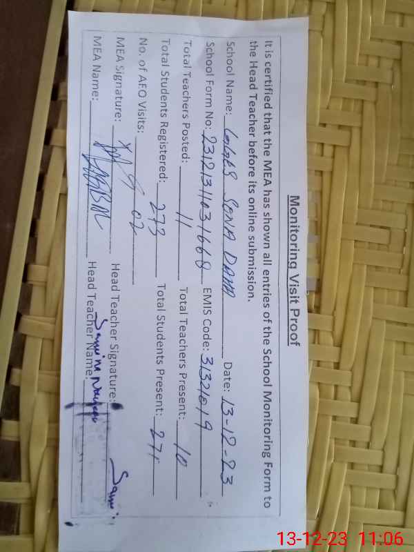 | Certified that this School was Inspected by the Undersigned MEA/DMO Today and the Information Stated Above is as Per Record. | |||||