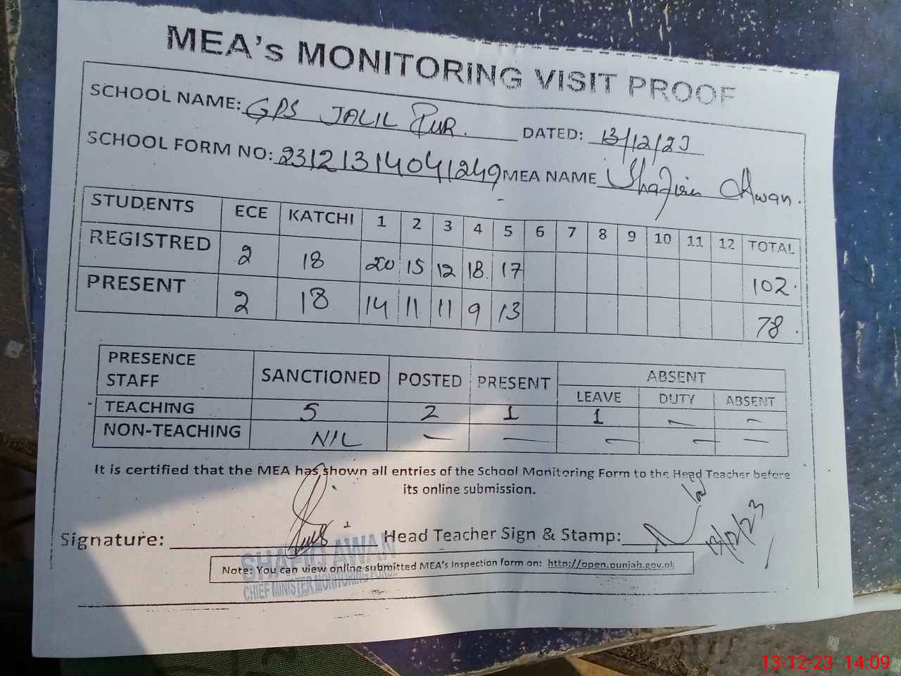 | EMIS Code: 36410266 | Name of School: GPS JALIL PUR, ABDUL HAKIM | |||