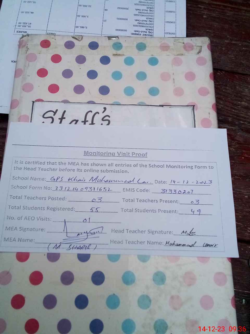 | EMIS Code: 31330207 | Name of School: GPS KHAIR MUHAMMAD LAR | |||