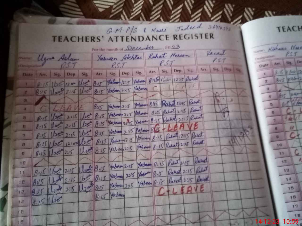 | CNIC | Full Name | Designation | R/C | Absence During Last Calender Month |