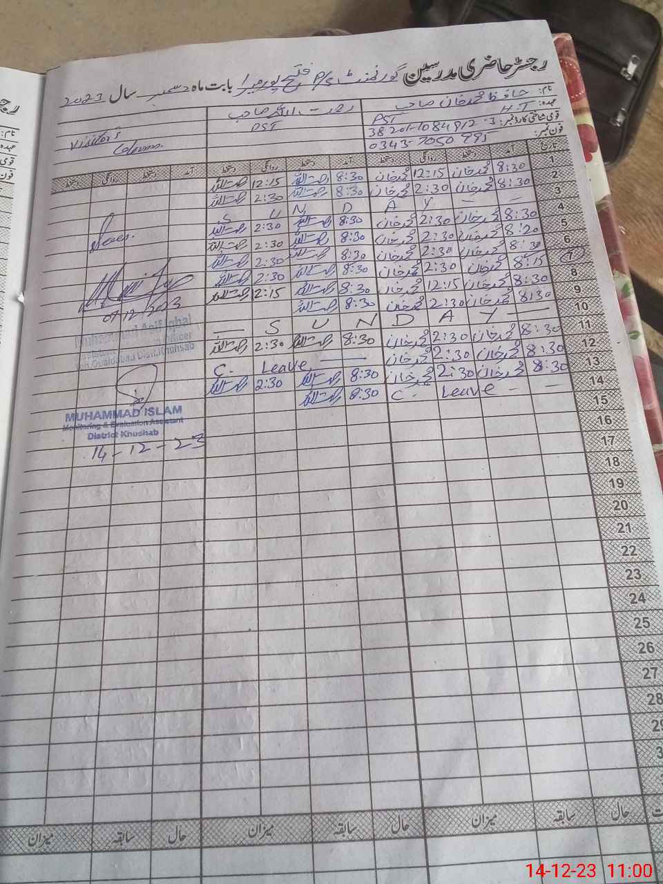 | Name: MU**** KH**** Designation: (School Headmaster's/Headmistress's) PST Phone/Cell Number: 03**** |
