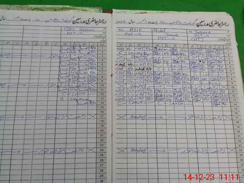 | CNIC | Full Name | Designation | R/C | Absence During Last Calender Month |