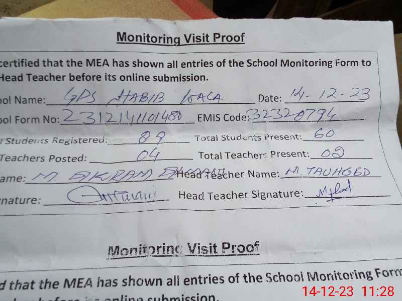 | EMIS Code: 32320794 | Name of School: GPS HABIB WALA | |||