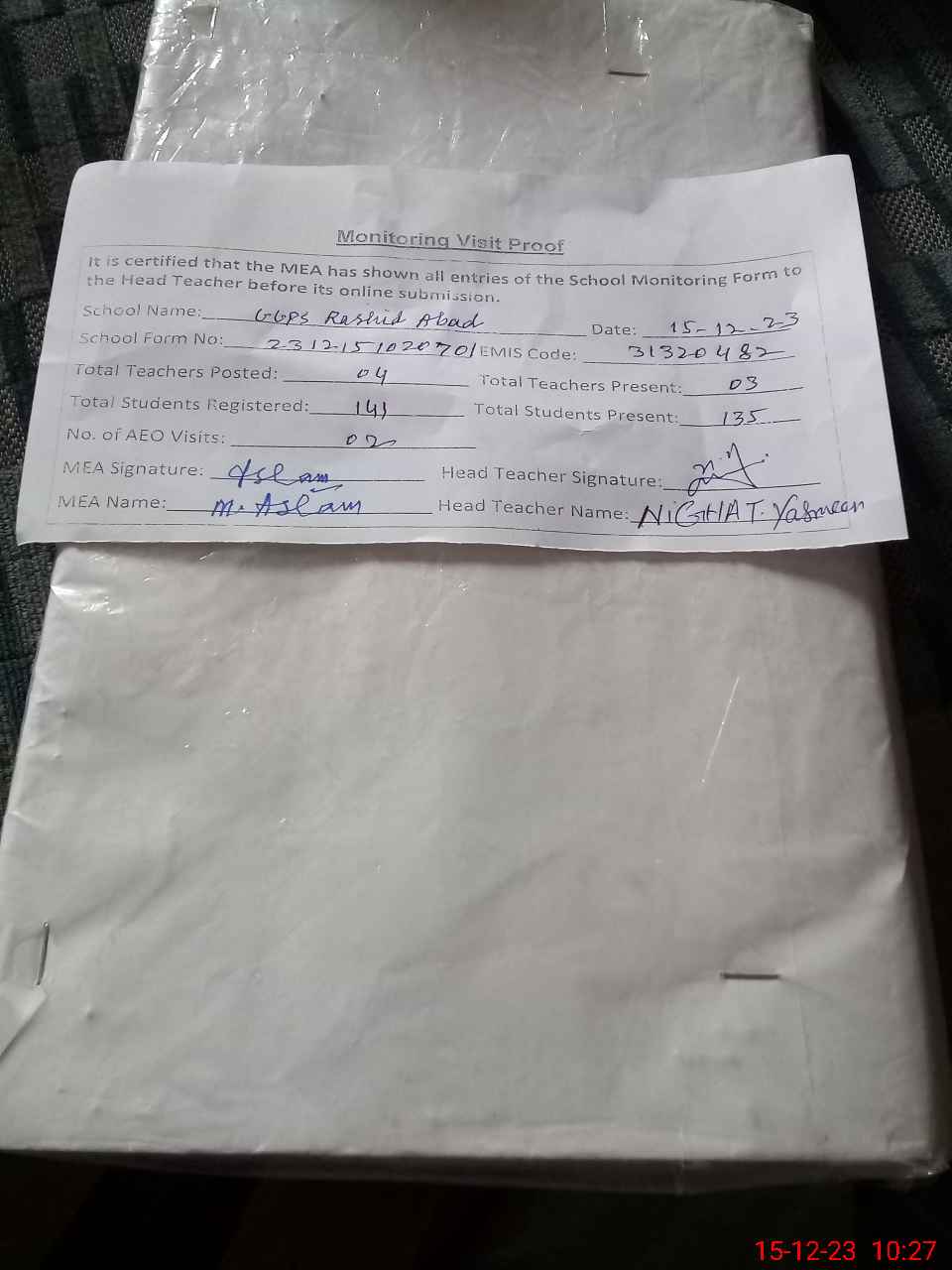 | EMIS Code: 31320482 | Name of School: GGPS RASHEED ABAD | |||