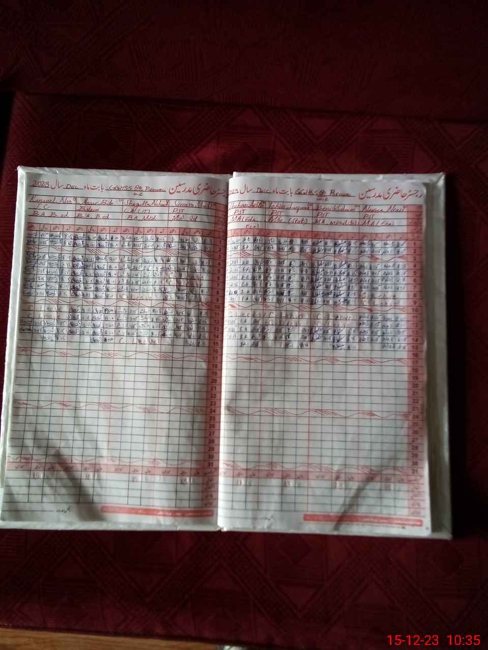 | CNIC | Full Name | Designation | R/C | Absence During Last Calender Month |