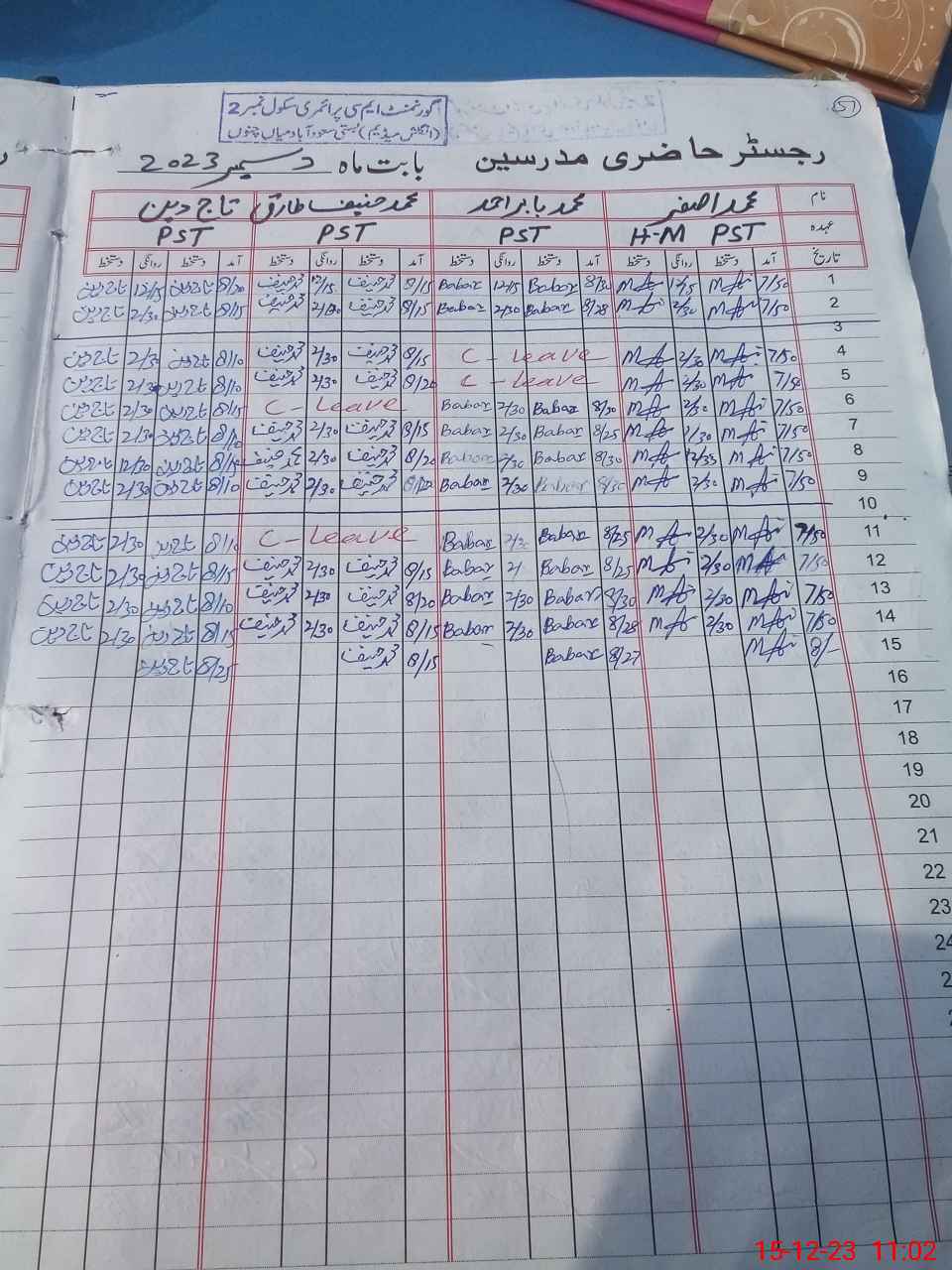 | CNIC | Full Name | Designation | R/C | Absence During Last Calender Month |