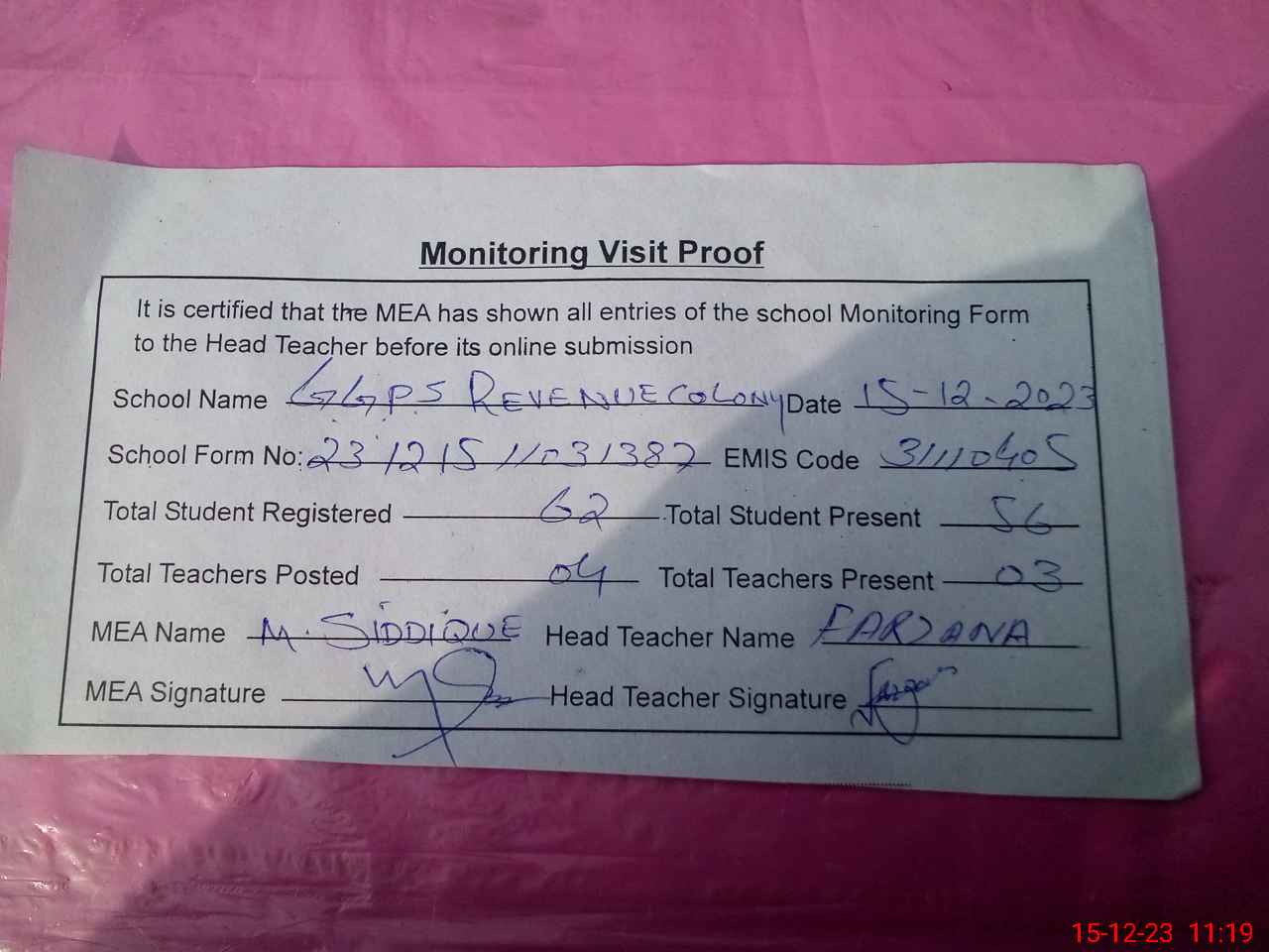 | EMIS Code: 31110405 | Name of School: GGPS REVENUE COLONY | |||