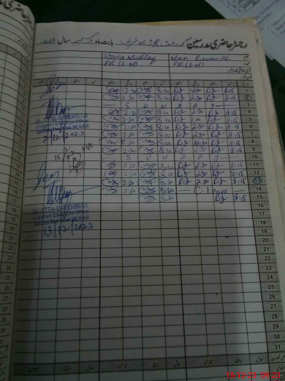 | CNIC | Full Name | Designation | R/C | Absence During Last Calender Month |