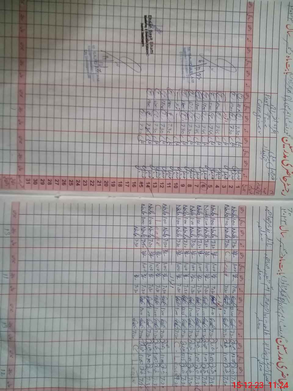| CNIC | Full Name | Designation | R/C | Absence During Last Calender Month |