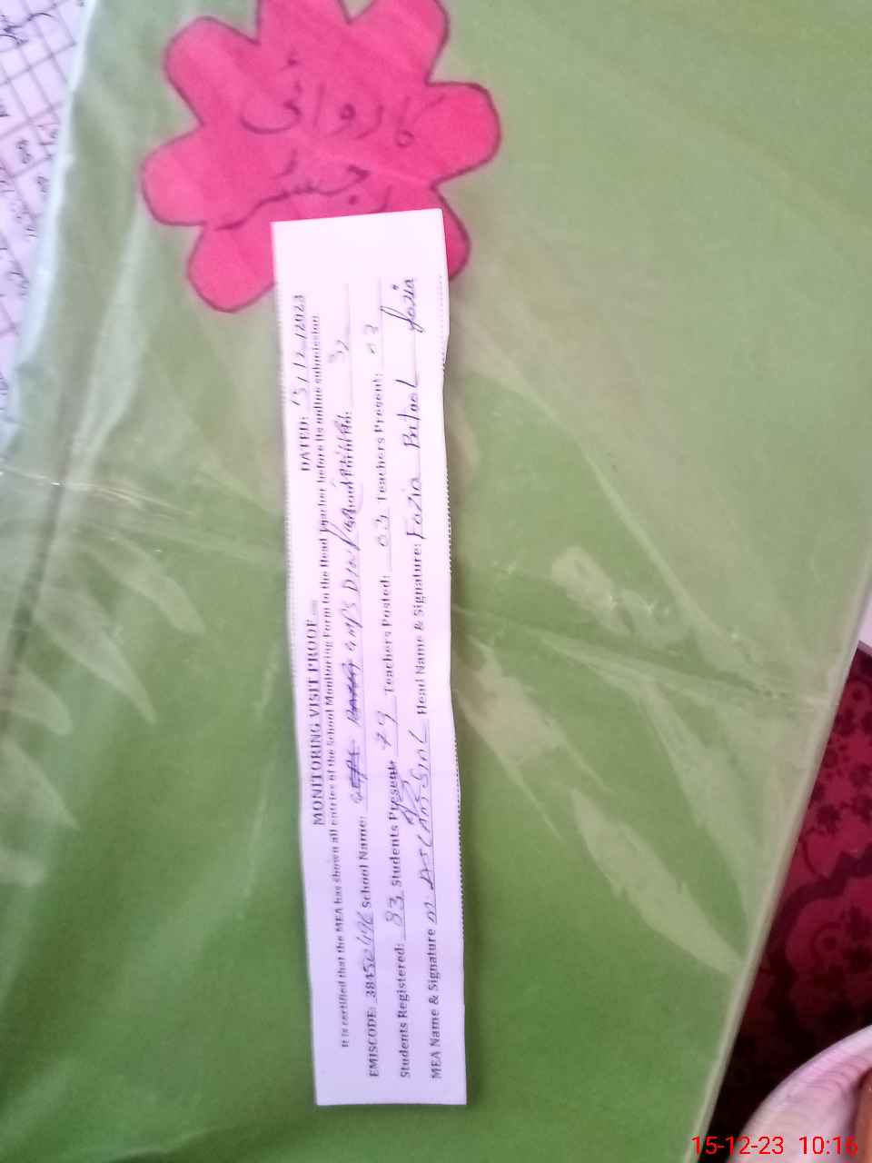| Attendance Register | Head Teacher | MEA with School | Visit Proof |