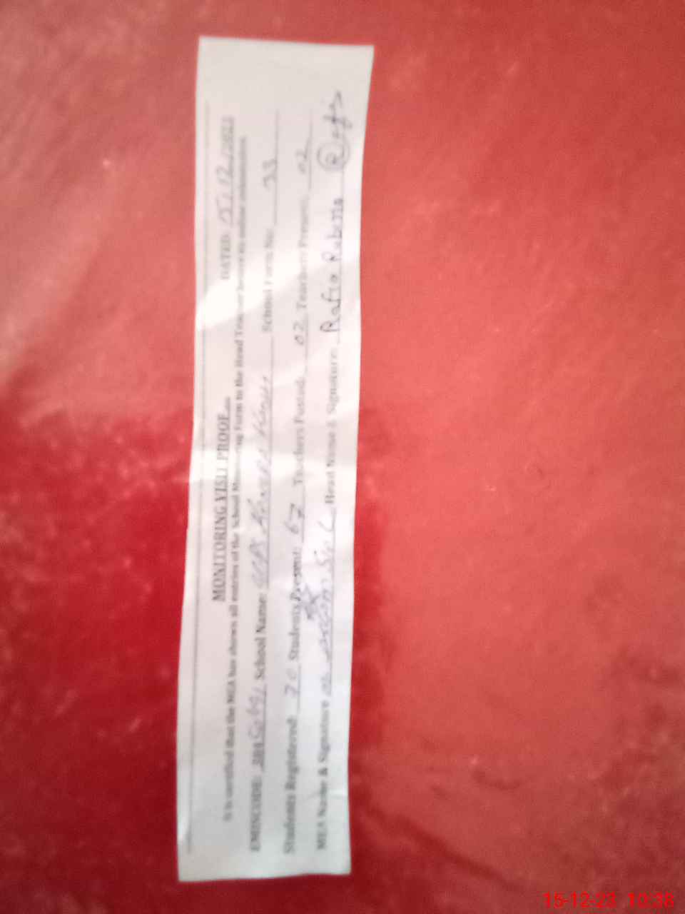 | Attendance Register | Head Teacher | MEA with School | Visit Proof |