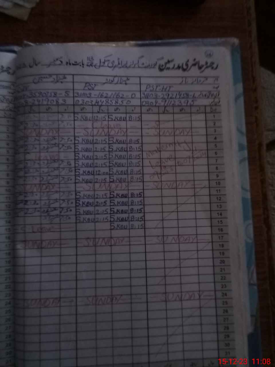 | CNIC | Full Name | Designation | R/C | Absence During Last Calender Month |