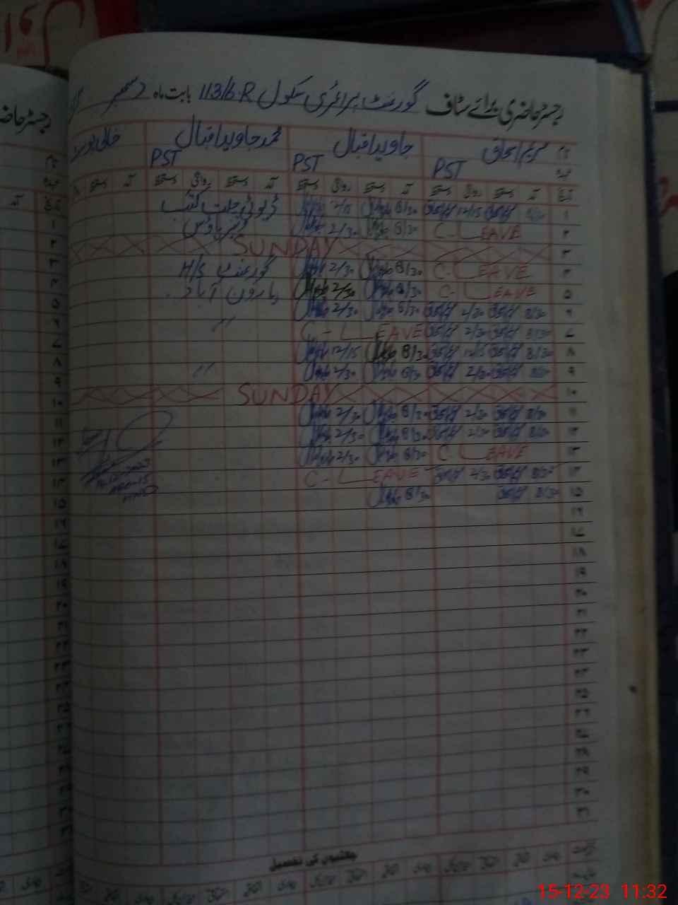 | CNIC | Full Name | Designation | R/C | Absence During Last Calender Month |