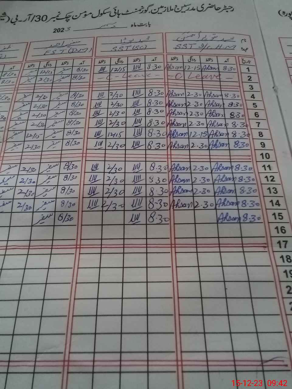 | CNIC | Full Name | Designation | R/C | Absence During Last Calender Month |