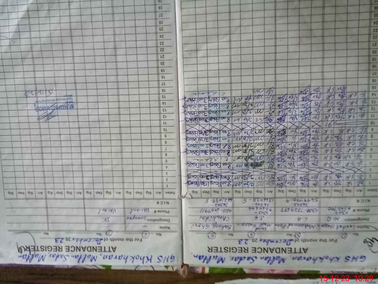 | CNIC | Full Name | Designation | R/C | Absence During Last Calender Month |