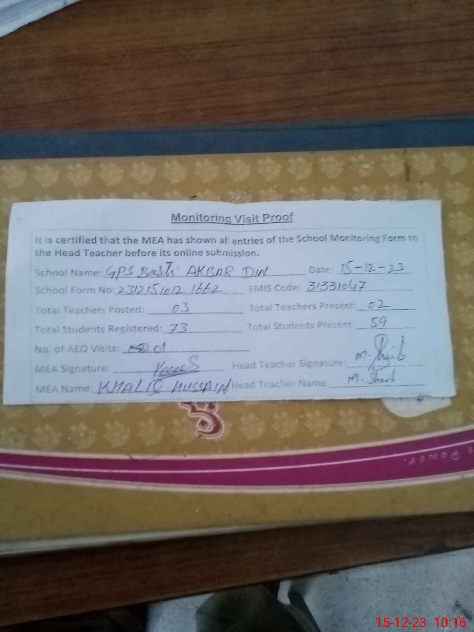 | EMIS Code: 31331047 | Name of School: GPS BASTI AKBAR DIN | |||