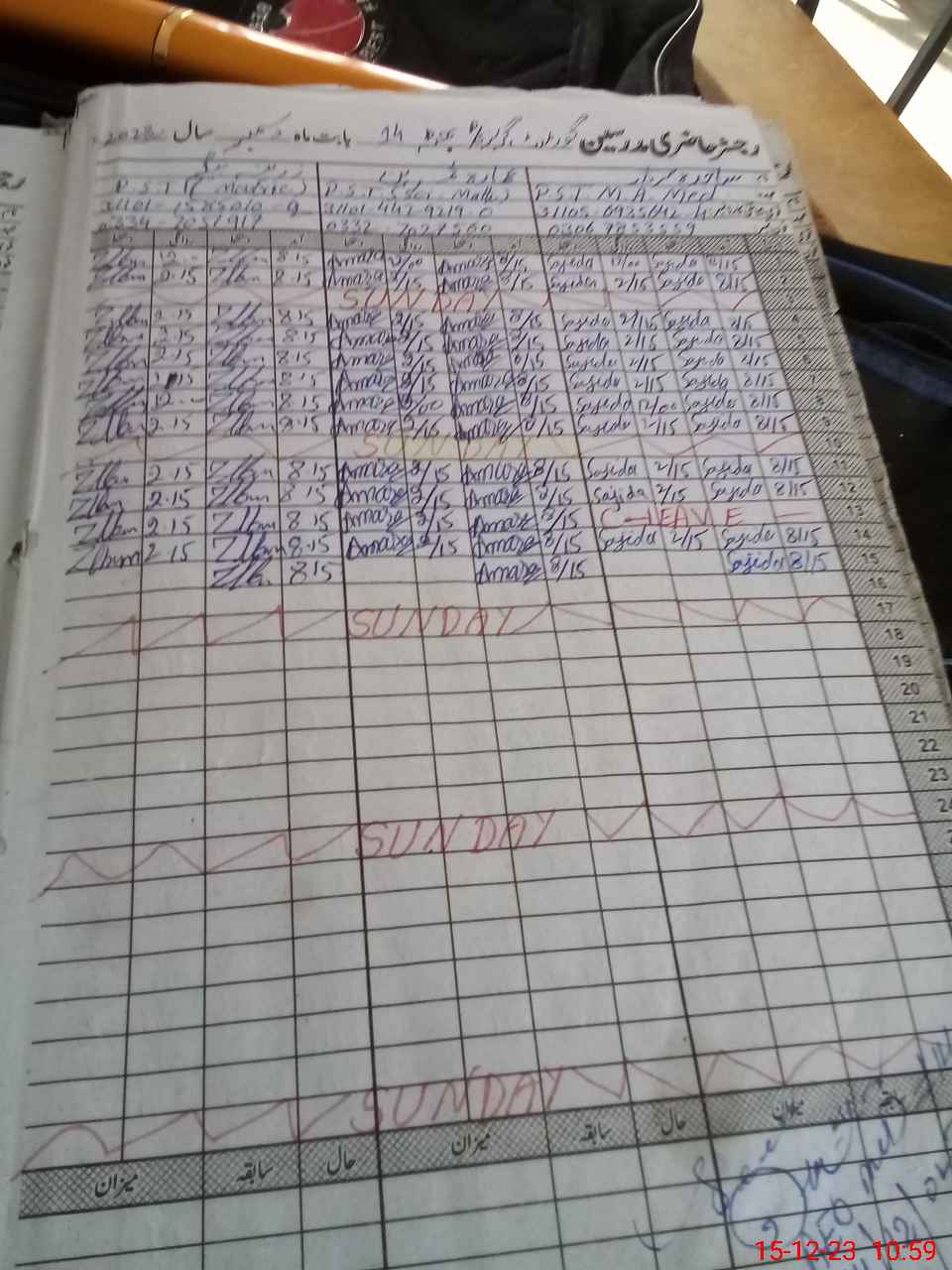 | CNIC | Full Name | Designation | R/C | Absence During Last Calender Month |