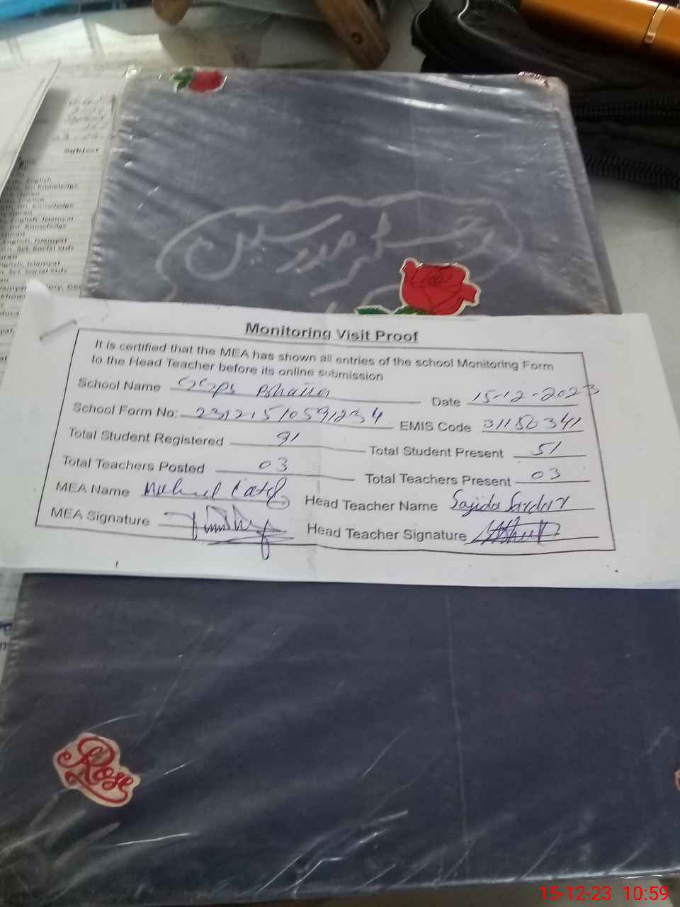 | Attendance Register | Head Teacher | MEA with School | Visit Proof |