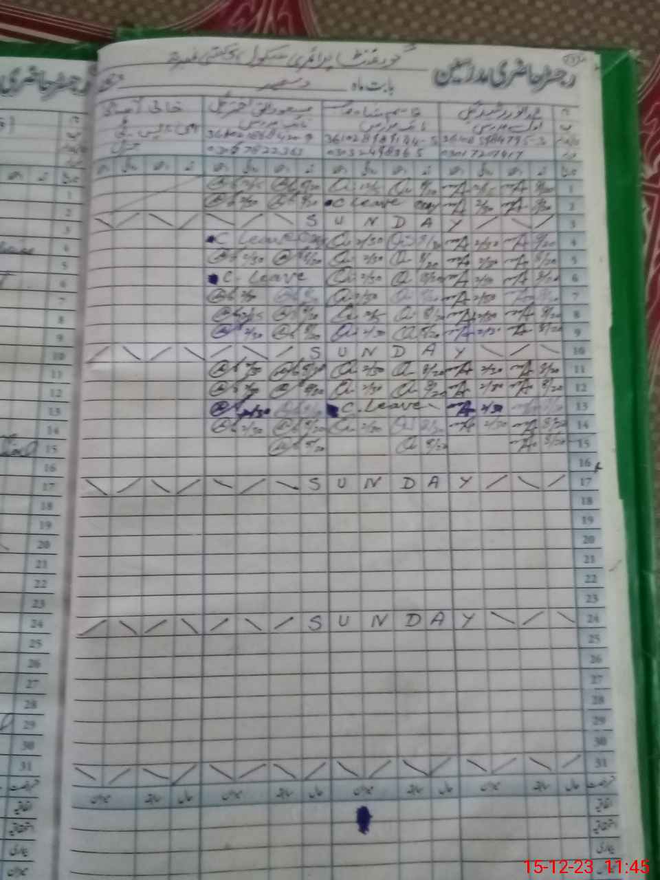 | CNIC | Full Name | Designation | R/C | Absence During Last Calender Month |