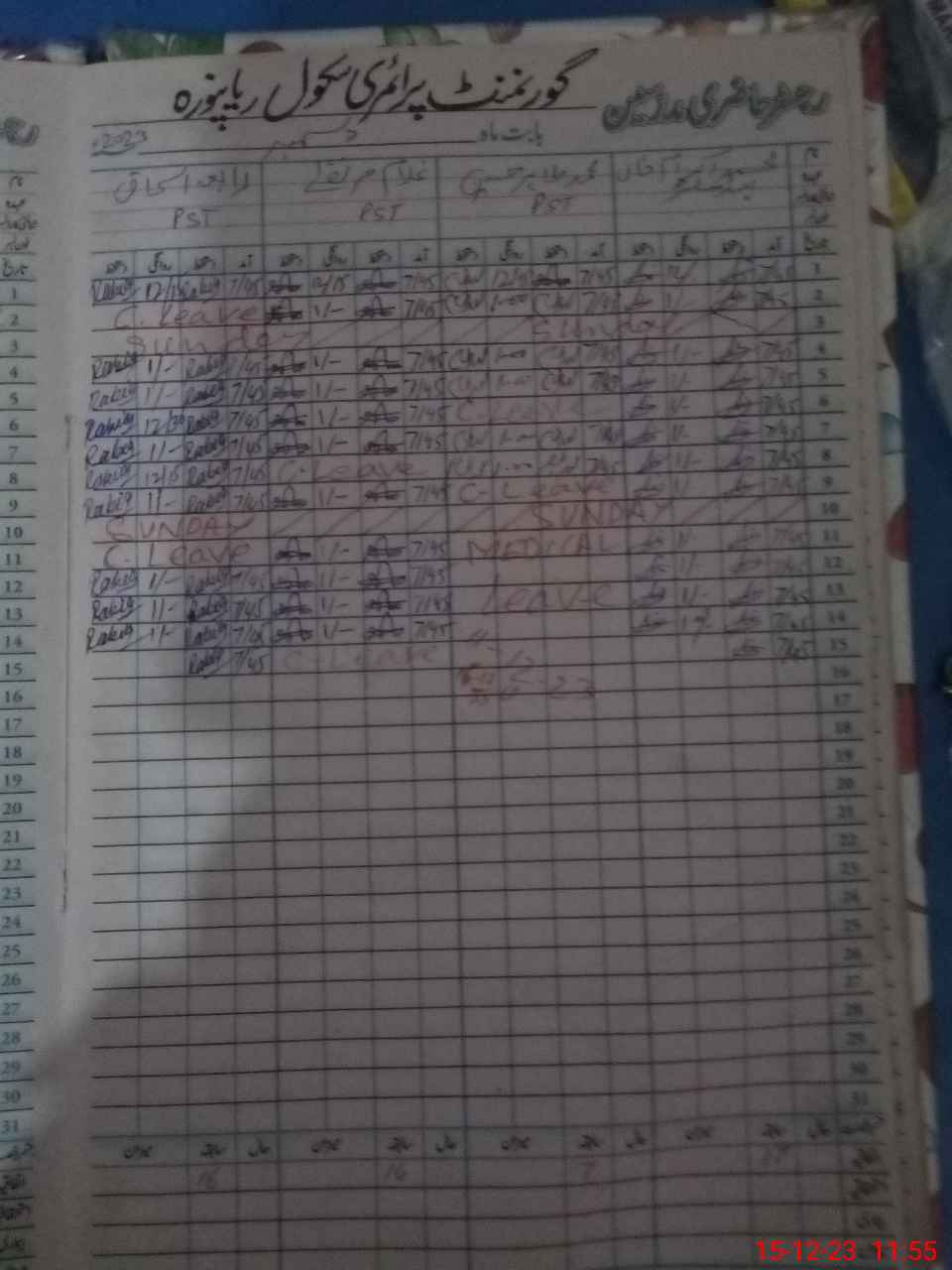| CNIC | Full Name | Designation | R/C | Absence During Last Calender Month |